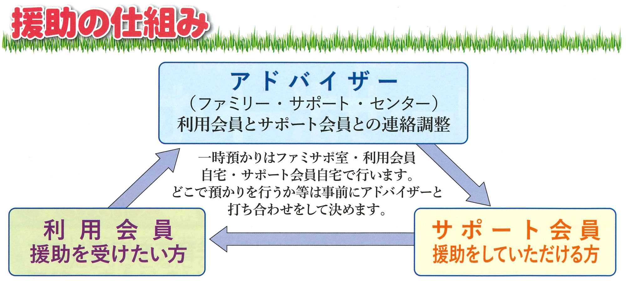 ファミリー・サポート・センターは、育児の援助を受けたい方「利用会員」と、育児の援助を行いたい方「サポート会員」からなる会員組織で、保護者が仕事や通院などで子どもの世話や保育園児等の送迎ができなくなったり、子どもを一時的に預けたい時などに利用できるサービスです。